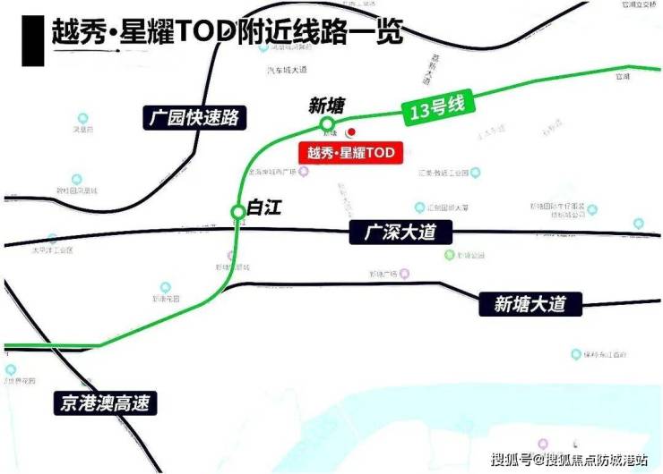 广州越秀星耀TOD最显著的优势,在于其紧邻地铁13号线新塘站,步行距离仅约400米。这一地理优势并非孤立存在,而是嵌入于整个新塘TOD枢纽的宏大规划之中。作为广州东部体量最大、功能最全的综合交通枢纽,新塘TOD已明确规划整合5条地铁线路、3条高铁线路及2条城际轨道,形成覆盖粤港澳大湾区主要城市的立体化交通网络。
