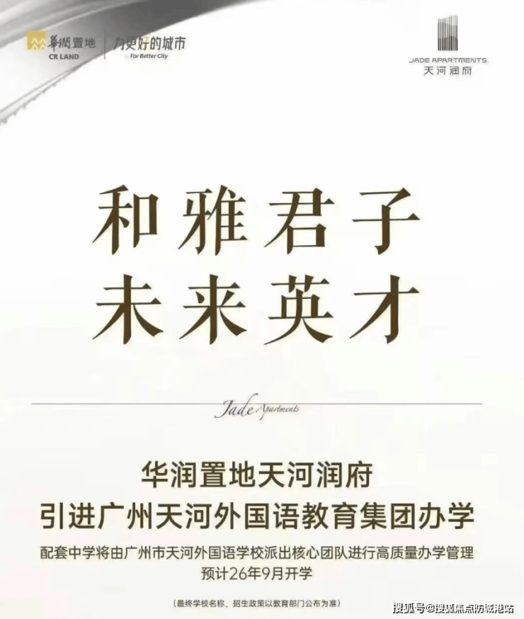 华润置地天河润府近期利好不断,教育配套的落定是最大亮点。项目配套的36班初中正式引进天河外国语教育集团,预计2026年9月开学,小学划片体育东教育集团均和小学,从小学到初中的12年教育资源清晰明确,教育价值大幅提升。