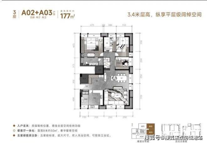 177㎡户型尽显奢华与舒适,是改善型家庭的理想之选。入户玄关预留鞋柜空间,增强收纳功能,让归家更加有序。五星级套房设计,拥有双人洗浴空间,还可放置独立浴缸,为居住者提供舒适的卫浴享受,彰显尊贵生活。客餐厅一体,面宽 8 米约 50㎡,打造奢华餐客空间,无论是家庭聚会还是招待亲朋好友,都能轻松容纳,尽显大气。四间卧室布局合理,空间宽敞,可满足家庭成员不同的居住需求。整体户型空间开阔,功能齐全,为追求高品质生活的家庭提供了极致的居住体验。