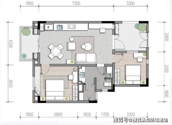 ·一体化客餐厨:约4.2米面宽,30.66㎡,布局灵活多变;