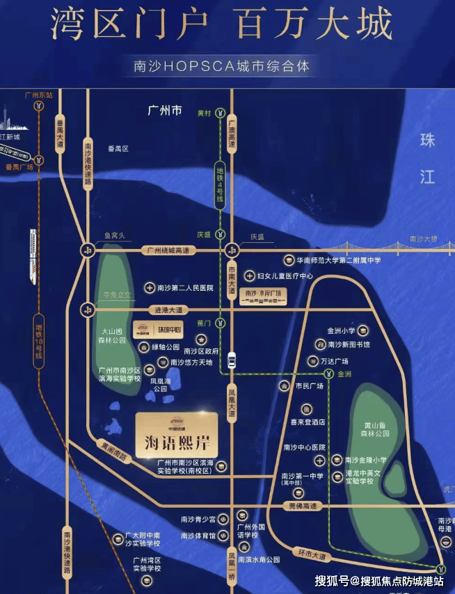 中国铁建·花语上城坐落于南沙中芯凤凰大道这条城市中轴之上,地理位置堪称黄金。凤凰大道作为南沙新中轴,串联起蕉门河区板块与明珠湾板块,沿线聚集了南沙主要的成熟市政配套,资源高度集中。日常办事方面,得益于中芯地段的优势,周边政务服务机构分布密集,居民办理各类行政事务高效便捷。购物需求无需远行,项目自带的10万平方米高端Shopping mall——中国铁建南沙环宇城已于2023年9月开业,且在同年10月荣获大众点评榜“广州商场好评榜第一”,涵盖购物、餐饮、娱乐等多元业态。医疗保障同样可靠,周边有中山大学第一附属医院南沙院区和广州市第一人民医院南沙医院这两所三级甲等综合医院,前者是华南地区综合实力最强医院,正打造国际医疗中心;后者作为南沙首个三甲综合医院,专科齐全、设备一流,为居民健康保驾护航。