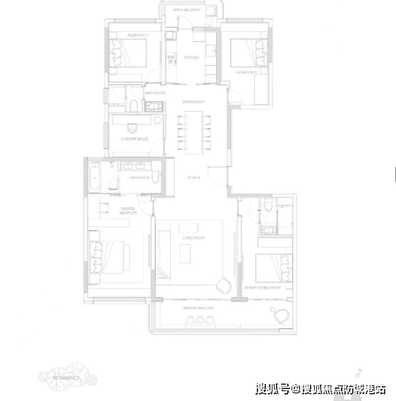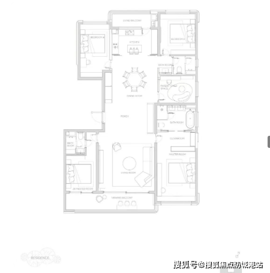 190㎡南北双园景户型:该户型与190㎡双阳台户型形成差异化设计,主打南北双园景视野,客厅采用光幕三面宽设计,采光面充足,室内明亮通透;配备270度超广角观景视野,无论身处客厅还是卧室,都能欣赏到优质景观;采用经典四叶草布局,四个卧室分布在户型四角,相互独立,兼顾家人隐私,同时客厅、餐厅居中,动线合理,适合注重家人隐私与景观体验的改善家庭。