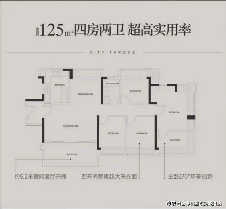 140㎡央景楼王:四开间朝南,双南向套房,LDKB一体化设计(50㎡互动空间);
