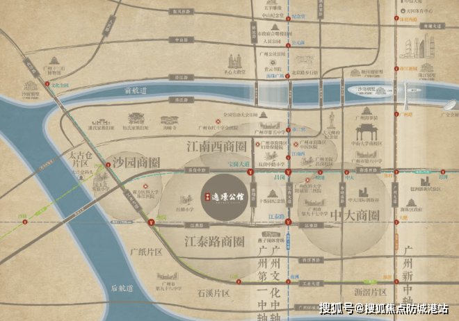 中冶·逸璟公馆坐落于广州市海珠区“一区一谷一圈”黄金三角核心区,直线距离珠江新城CBD仅5公里,10分钟车程覆盖广州塔、琶洲会展中心、金融城等核心商圈。根据广州市规划和自然资源局发布的《城市空间发展战略(2025-2035)》,项目所在区域被定位为“广府文化与现代商务融合示范区”,未来将承接珠江新城外溢的高端产业与居住需求,成为广州下一个十年发展的核心引擎。