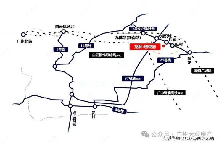 轨道交通: 项目距离地铁14号线何棠下站约2公里,该距离通过社区巴士/骑行/驾车接驳最为高效。根据2026年《广州市轨道交通线网规划优化方案》,规划中的地铁37号线(知识城-广州东站) 已在知识城设站规划研究中,未来将实现与市中心的高速联系。