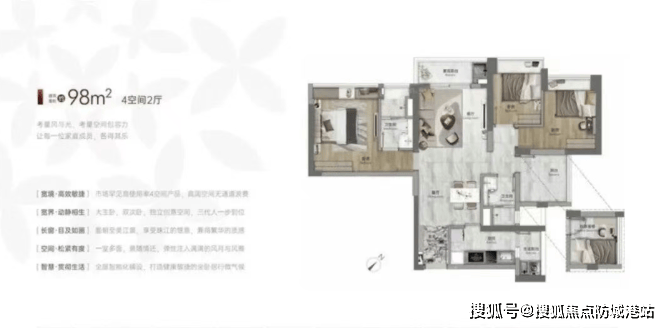 A4:全新加推的D栋位于社区更核心位置,南向直面中心园林,视野与静谧性更佳。产品为“第五代超新规”设计,主力户型为建面约76-139平方米的三至四房,实用率高,部分约126-139平方米户型可享270°环幕江景。