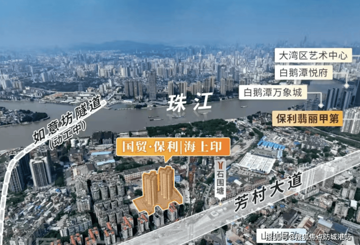 国贸·保利|海上印位于广州市荔湾区白鹅潭沿江板块的核心区域,紧邻芳村大道中石围塘地段,是国贸集团与保利地产联合开发的高端小户型住宅项目。项目性质以住宅为主,产品涵盖77㎡三房、88㎡四房以及108㎡四房三种主力户型,兼顾刚需及改善型购房者。开发商国贸集团及保利地产在国内具有丰富住宅开发经验和市场口碑,尤其擅长滨江景观住宅和高端住宅社区的打造,确保项目在品质、设计及施工管理上的优势。项目整体定位瞄准年轻家庭、刚改型家庭及追求江景小户型的购房群体,以低密、景观视野和生活便利为核心卖点,主打高性价比滨江小户型产品。