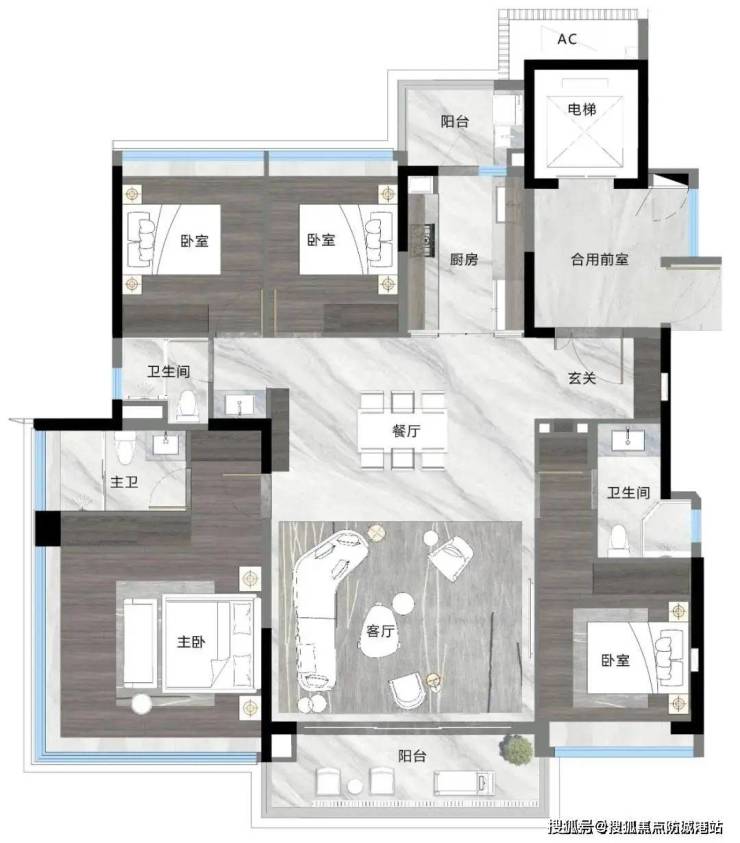 ▲越秀·观樾建面约190㎡户型样板间效果图