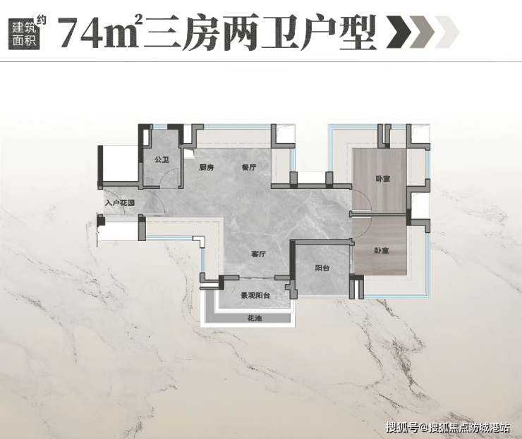 建面约74㎡三房是老黄埔新盘的稀缺小户型,极大降低了置业上车门槛,最高使用率可达110%,完全媲美同期同类产品。该户型朝南设计,拥有南向园景与北向山景双重视野,是80㎡以下面积段中少有的能实现南北对流的产品。餐厨空间可灵活改造为一体化设计,6.85米超长操作台三面环绕,能容纳六人聚餐,搭配2.9米宽全明山景窗,让小户型也拥有豪宅级体验。