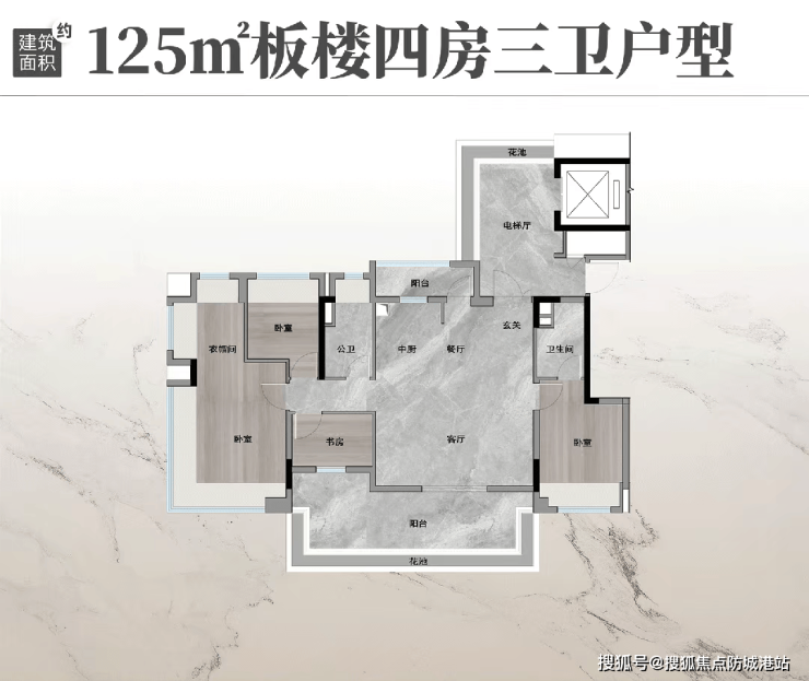 建面约94㎡四房以高度灵活性为特色,预留270度双边采光边厅,可打造为全景舱客厅,搭配4米超大开间客厅,尺度堪比120㎡以上大户型,满足家庭日常居住与社交需求。建面约110-125㎡板式小洋房则主打高端改善,一字排开的板楼设计实现南面无遮挡视野,前后双花园环抱,独梯入户、四面宽朝南、南北对流超大方厅等大平层级别配置一应俱全。