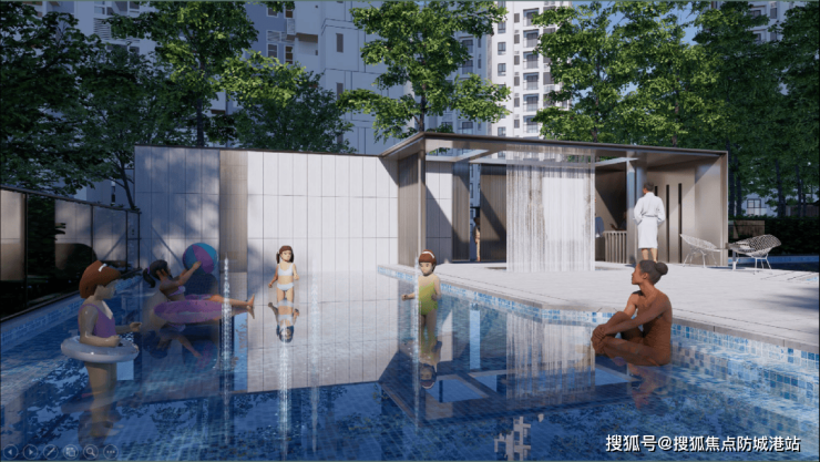 结合运动场所,设置全年龄户外泳池空间,打造儿童、成人双泳池,提供业主提供全天候的品质服务。
