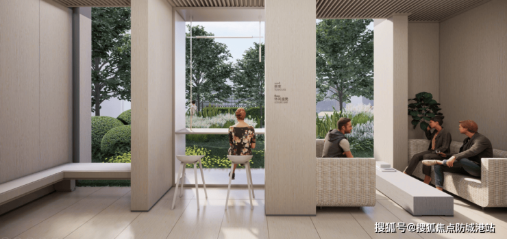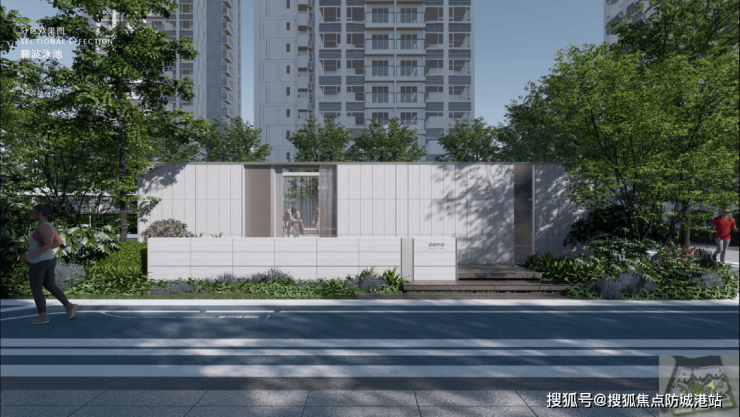 在面向社区主入口的区域,结合社区来访动线,设置无界社区空间,便于业主对客人的接待。
