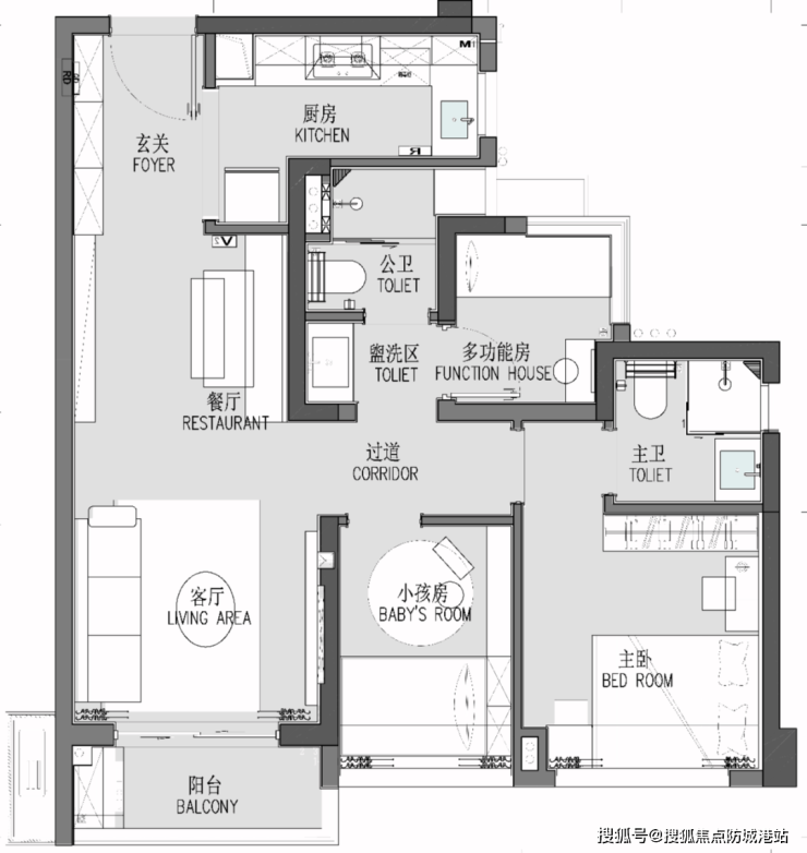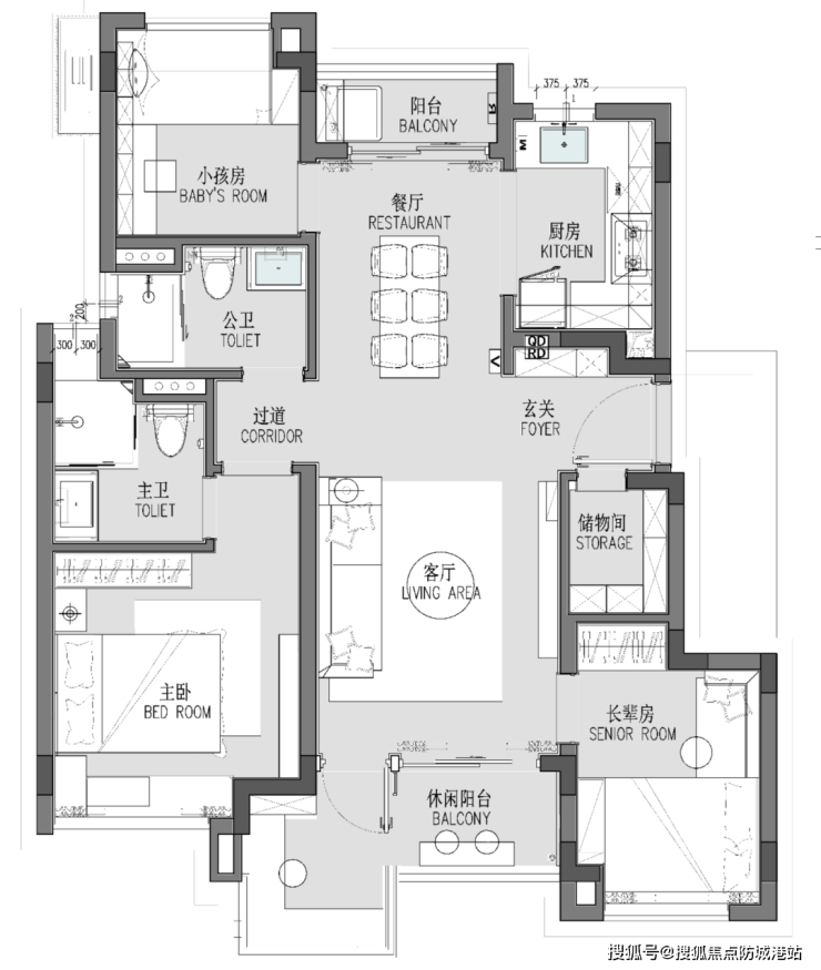 • 增加入户储藏空间,为小孩家庭提供婴儿车、行李箱等大件放置区域。