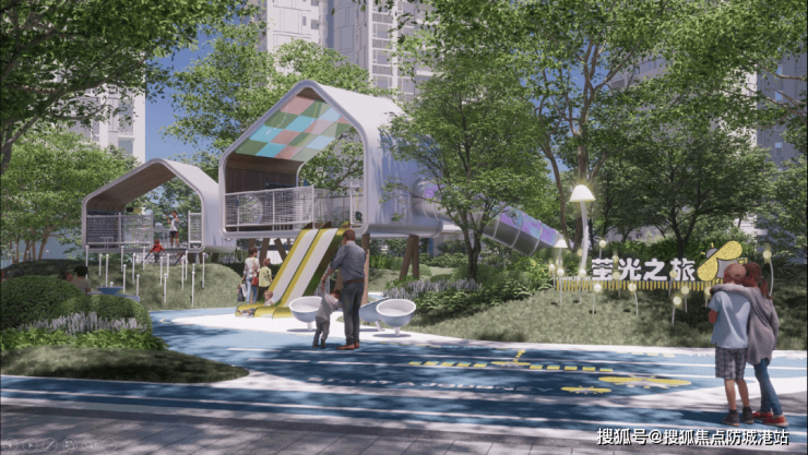 在项目视线最通透、空气流通最佳的区域,设置星光森林童乐天地,不仅为儿童提供无忧无虑的童乐时光,更为儿童提供最安全的监控看护服务。