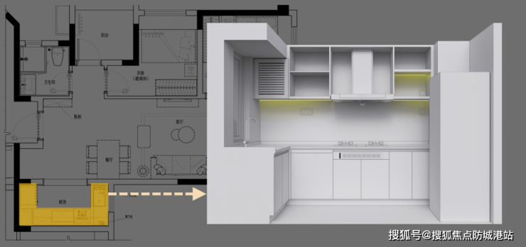 收纳:玄关位,整体通高玄关柜设计,解决业主群类收的问题,小抽屉组合,避免小物件影响开放格整洁,换鞋凳便于主客换鞋,鞋柜活动层板可调节收纳空间;厨房地柜与吊柜结合设计,配柜体感应灯带、吊柜设有可视化柜门,让业主更舒心;卫生间洁具柜及镜柜设计,马桶侧边柜,解决手机、纸巾收纳。