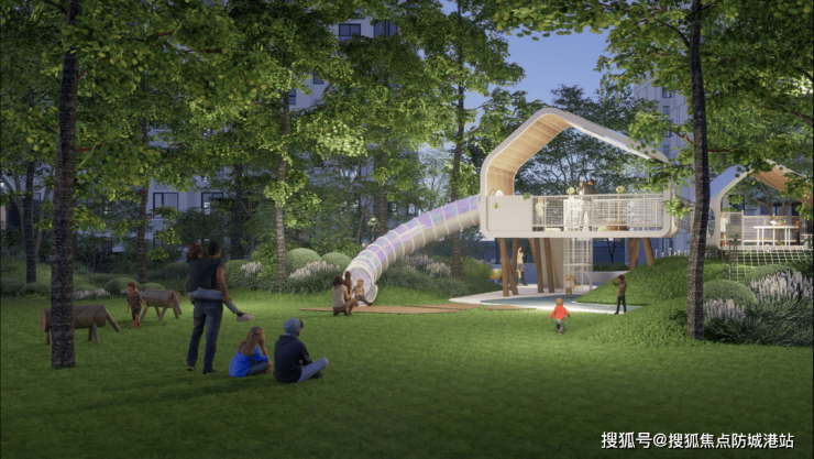 格林水岸项目拥有超大的内部园林空间,在园林户外活动空间根据年龄、使用时段等、活动类型等因素进行细分,形成儿童专属的星光森林儿童器械区;面想亲子娱乐的草坪聚会区;面想老人的林下阅读区、健康慢跑以及全年龄段的森林会客、碧波泳池、林下健身等区域。