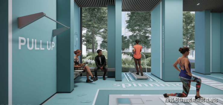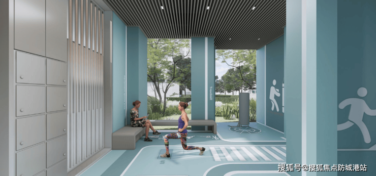 在较为外向、空气流通较好的区域,结合室外运动场地的延续性,打造能量动感zone运动健身区。