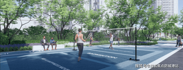 由健康慢跑环道串联起多个国民运动场所,羽毛球、篮球、瑜伽管、器械区等,为小区业主提供全年龄段的健康运动场所。