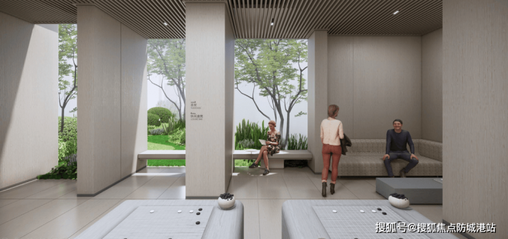 在面向内侧的园林、较为安静的的架空层区域,利用自然景观的向内衍生,设置了悠time棋牌阅读空间。