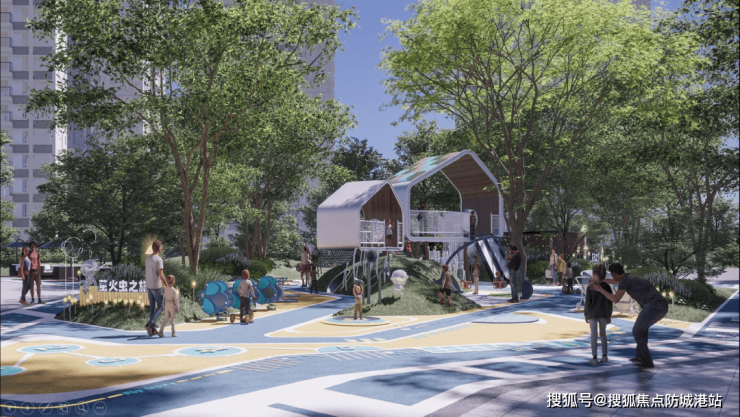 通过社区景观、架空层泛会所,打造邻里社交系统;通过无忧成长盒子、半场篮球场等打造孩子成长榜样系统;通过运动花园、漫步社交环道、运动健康环道、动感能量zone,打造自我提升管理系统;通过儿童主题乐园、亲亲阳光草坪等,打造金地特有的360°玩呗景观系统。