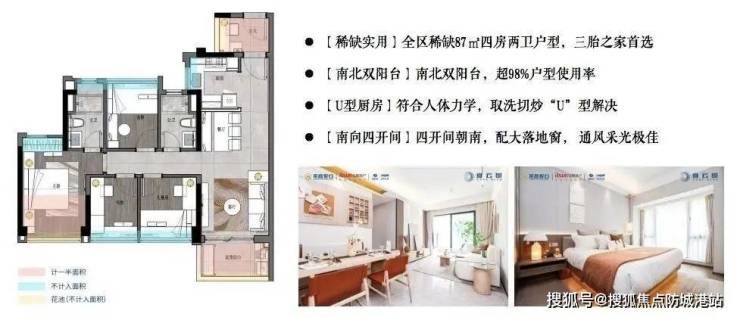 87㎡四房两卫:四开间朝南,南北双阳台,三胎之家首选