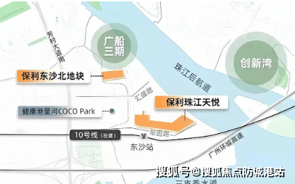 保利珠江天悦位于广州市荔湾区白鹅潭沿江经济带的核心区域,距离在建的地铁10号线东沙站直线距离不到100米,预计2025年开通后将提供便捷的交通条件。此外,该项目背靠千亿级大健康产业平台——广州国际健康港,周边环绕着众多高端商业和文化设施,形成了一个功能齐全、生活便利的城市综合体。