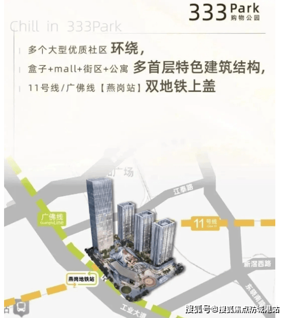 华新方圆·333坐落于海珠创新湾广纸新城核心区,具体位置为工业大道中333号,与白鹅潭CBD隔水相望,处于广州中心区域的黄金地段,周边地块成熟,配套完善,是名副其实的核心资产。项目最大的交通优势的是双地铁上盖,楼下即为广佛线燕岗站D出口,出站即达小区,实现地铁与居家的无缝衔接。