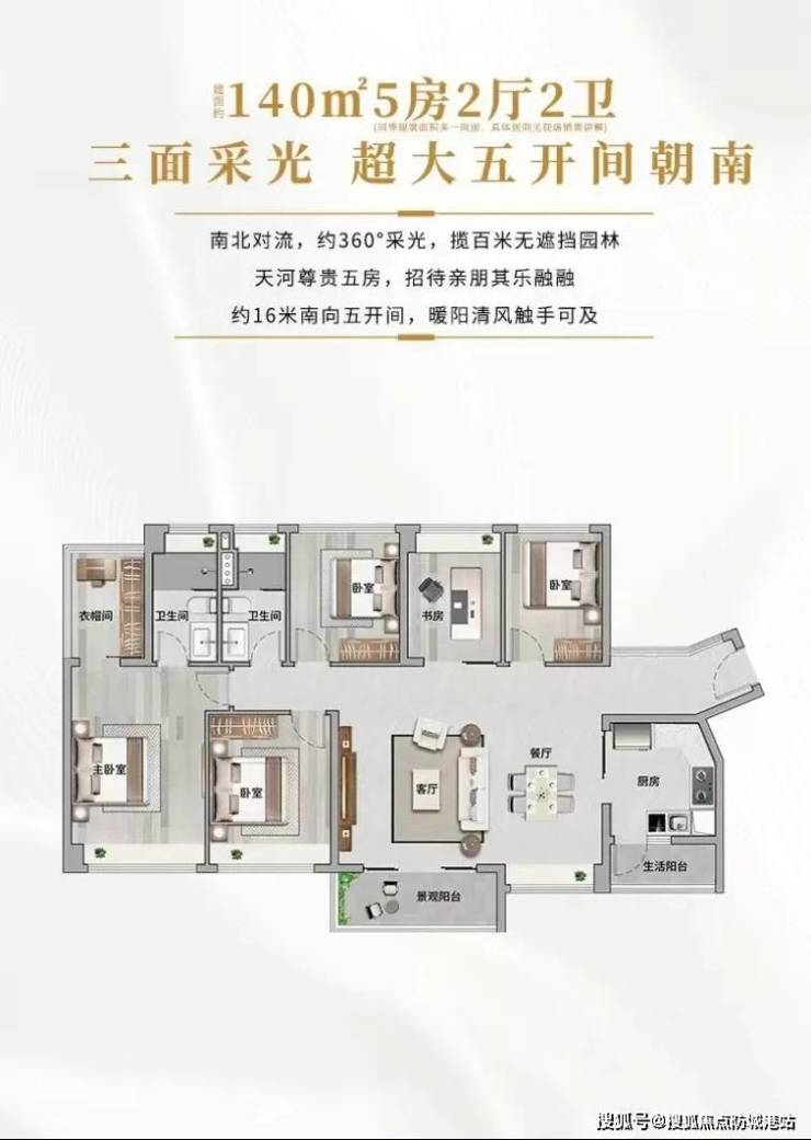 140㎡5房:270°环幕飘窗+双主套,得房率超100%,观景阳台直望珠江支流,最后8套总价680万起!
