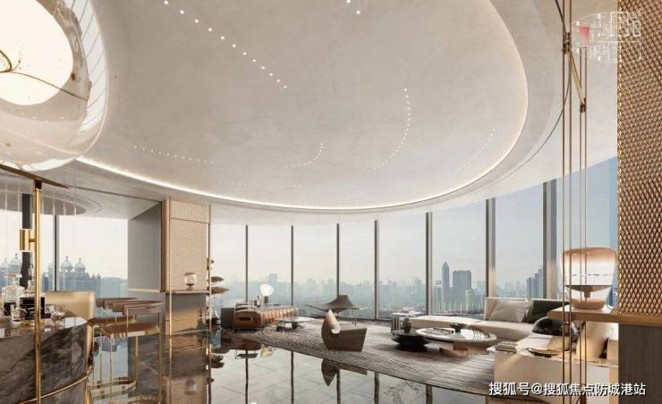 内间采用了酒店式开间设计,弧形幕墙把景观做到270°全屏化,像极一扇观景幕布。