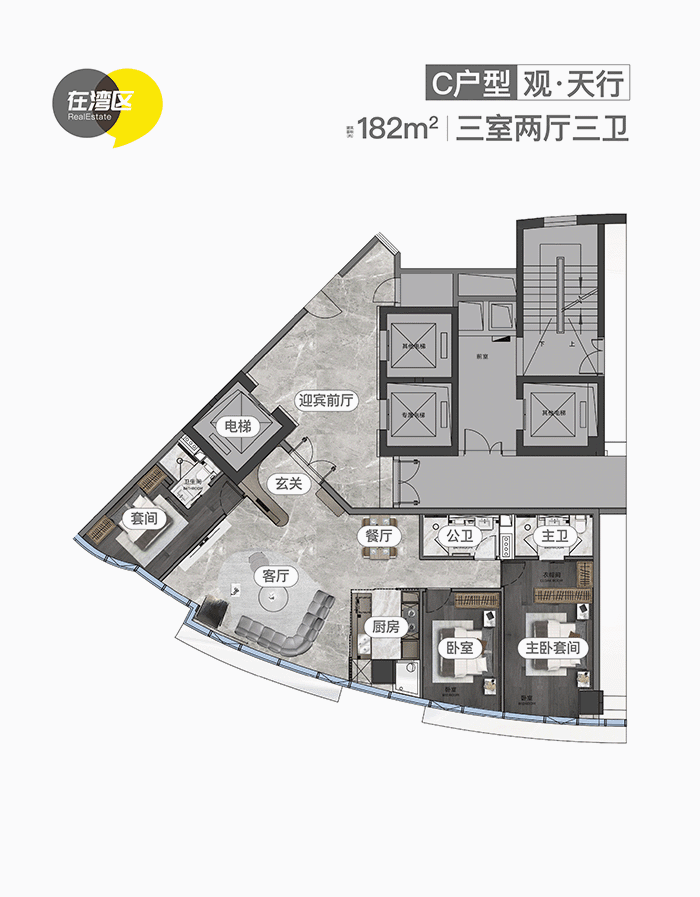 182、184㎡两个明星户型,则特别配置了迎宾前厅,体验极致的尊贵感。