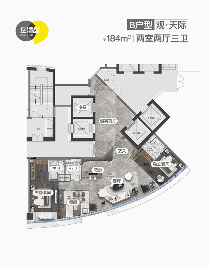 其中,184㎡做了双套间设计,搭配上圆弧形极致环幕视野,实力演绎塔尖资源只为少数人私藏。