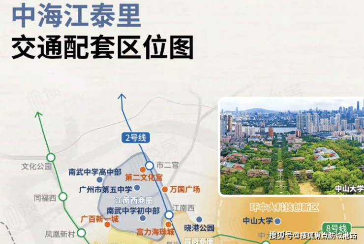 中海江泰里位于广州海珠活力文商旅融合圈核心东晓南板块,处于海珠区的重要位置。项目邻近2号线江泰路地铁站,直线距离约150米,步行仅200米,交通优势明显。周边配套成熟,200米即达万科里商圈,1公里内有富力海珠城、乐峰广场、燕汇广场、南珠广场等,商业氛围浓厚。医疗资源也十分丰富,全海珠1/2的三甲医院在此汇聚,包括中山大学孙逸仙纪念医院、广州医科大学附属第二医院、南方医科大珠江医院等,为居民的健康提供了有力保障。此外,项目所在区域有着浓厚的生活气息和艺术氛围,广州美术学院学生工作室扎根于此,使得艺术与商业紧密结合。