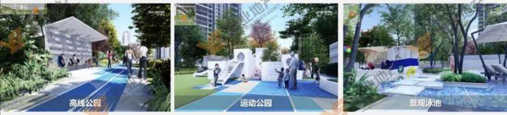 项目配建1.7万㎡立体商业广场,社区全龄段空中园林,高线公园、全龄段运动公园以及中心景观泳池。