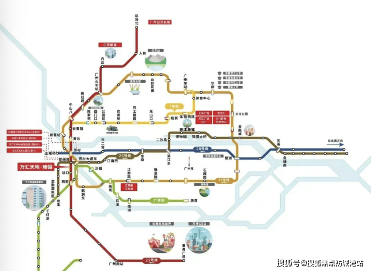 25号线(规划)/11号线:通过1站在芳村站换乘11号线(广州首条环线),可快速通达琶洲、广州东站、白鹅潭等重要节点。