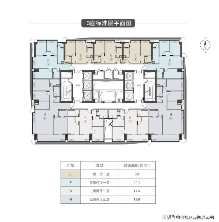 F户型 建筑面积约111㎡ 三房两厅一卫