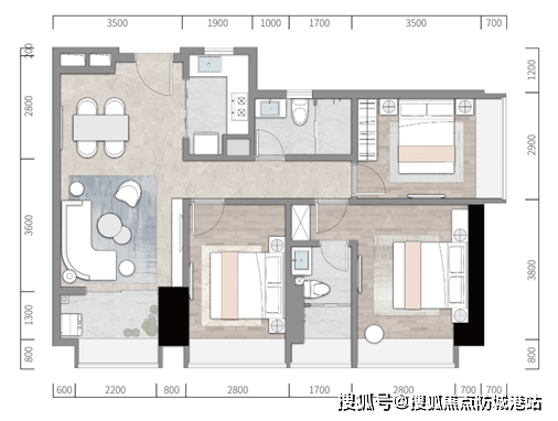 G户型 建筑面积约116㎡ 三房两厅一卫