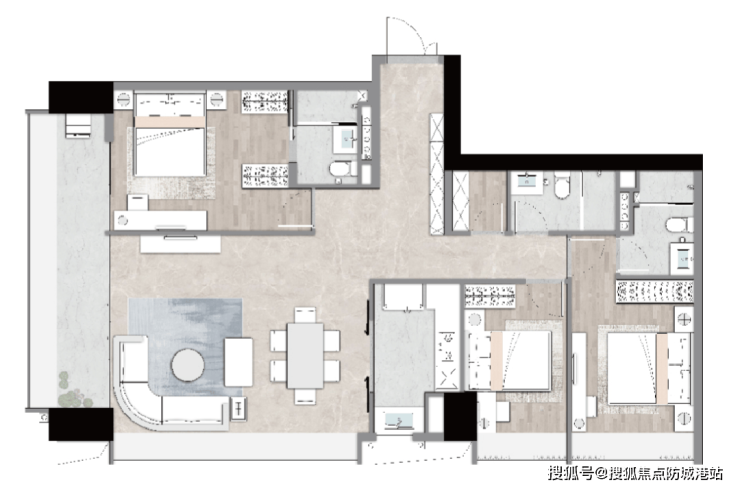 H户型 建筑面积约188㎡ 三房两厅三卫