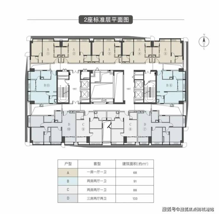 B户型 建筑面积约91㎡ 两房两厅一卫