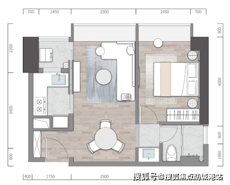 A户型 建筑面积约68㎡ 一房一厅一卫