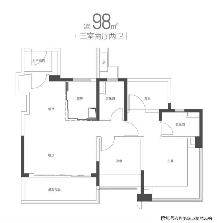 98㎡三房两卫:客厅开间达5.05米,公区开阔感显著提升,适合追求舒适度的改善家庭;