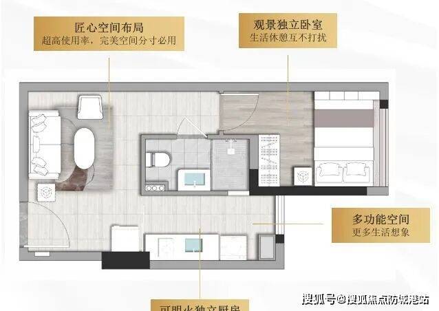 空间布局:虽面积精巧,但布局紧凑合理。通燃气、可明火的设计,满足日常烹饪需求,让生活更具烟火气。采用开放式设计,将客厅、卧室与厨房区域灵活融合,通过合理利用空间,如设置榻榻米床、定制收纳柜等,增加空间利用率。