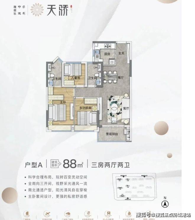 户型设计主打实用。主力户型 88 - 110㎡的三至四房,方正实用,部分户型带景观阳台或飘窗,空间布局合理。不过得房率因为板楼设计和风雨连廊计入公摊,部分户型相对低一些,像 110㎡户型公摊较大。但整体上,户型设计能满足不同家庭需求,全南向和户户南北通透的设计,采光通风好,居住起来还是很舒适的。
