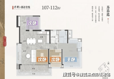 建面约107-112㎡:四房两卫,客厅带飘窗,采光良好,视野开阔。