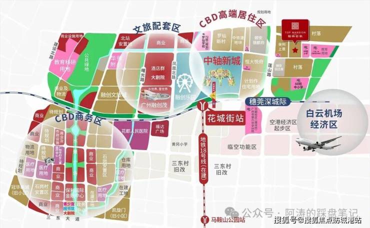 花都区连续多年工业总产值居全市前列,产业基础雄厚,而花都中轴CBD作为区域发展的核心,将重点发展高端商业、文化旅游、总部经济等产业,依托广州融创文旅城的带动,积极整合本地及清远等周边地区旅游资源,利用交通区位优势和144小时过境免签政策,大力发展集文化、旅游、体育、购物等为一体的复合式旅游项目,完善旅游服务配套设施,打造“吃喝玩乐购”一体化文化体育旅游品牌,努力打造粤港澳大湾区旅游生态合作试验区。