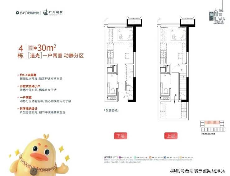 层高4.5米:上下两层独立入户,分水表分电表,实现“买一层享两层”空间利用率。