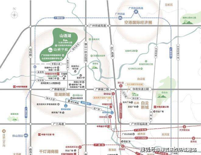 空港经济圈连接:距离白云机场仅 14 公里,通过佛山一环北行转广州绕城高速可直达,紧密连接空港经济圈。