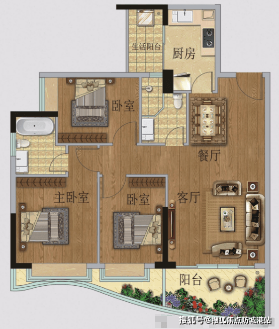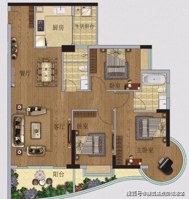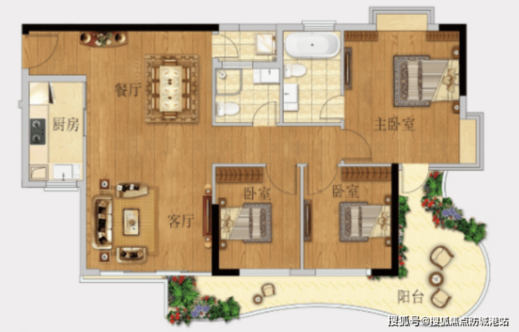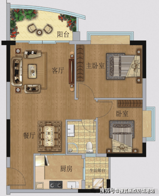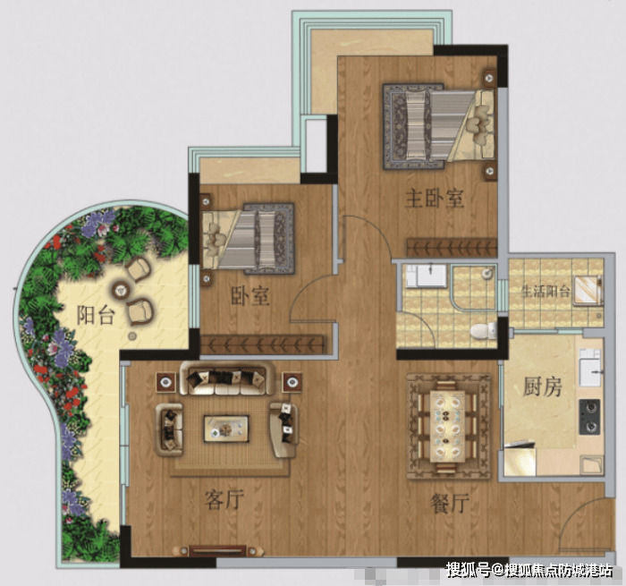 TOP03户型【82㎡2房1卫】:南向园林景观,270°景观阳台设计,阳光书房灵活多变。