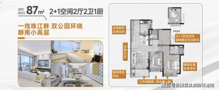 主力户型:87-125㎡三至四房,使用率超 90%,80% 户型南向瞰江;