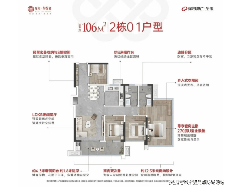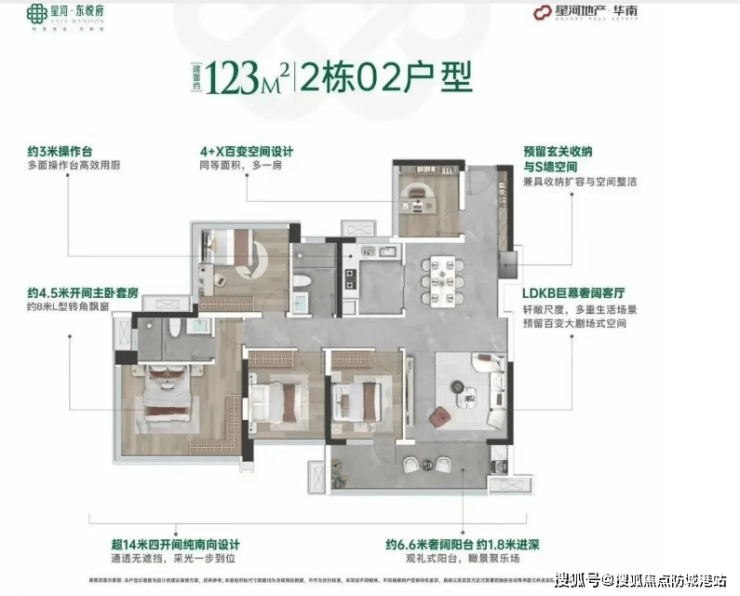 卖点一:超新规高使用率,空间利用率拉满 星河东悦府遵循南沙超新规设计,使用率最高可达128%,全赠送飘窗可灵活改造,小户型也能实现大空间体验,性价比远超同板块楼盘。
