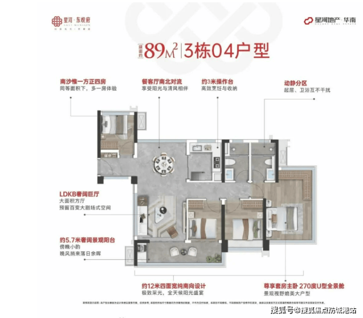 项目核心竞争力:配套+产品双在线 星河东悦府作为区域内稀缺超新规楼盘,兼具现成优质配套和高使用率产品,学铁商医步行可达,89㎡四房、138㎡双主套等户型竞争力突出。